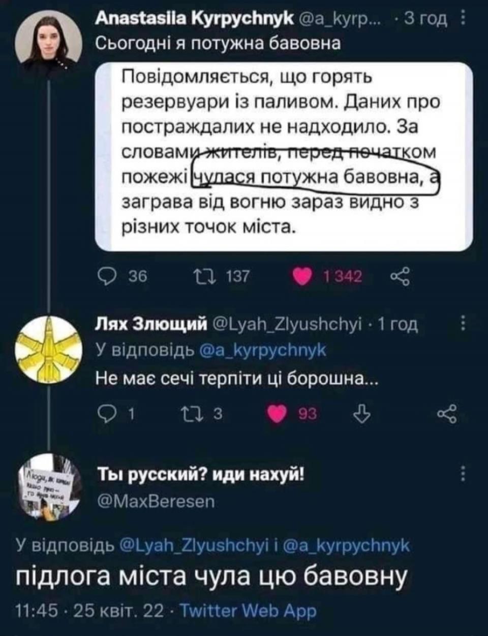 Знайшла прикол про бавовну. Раша боти вчать українську, невдало)