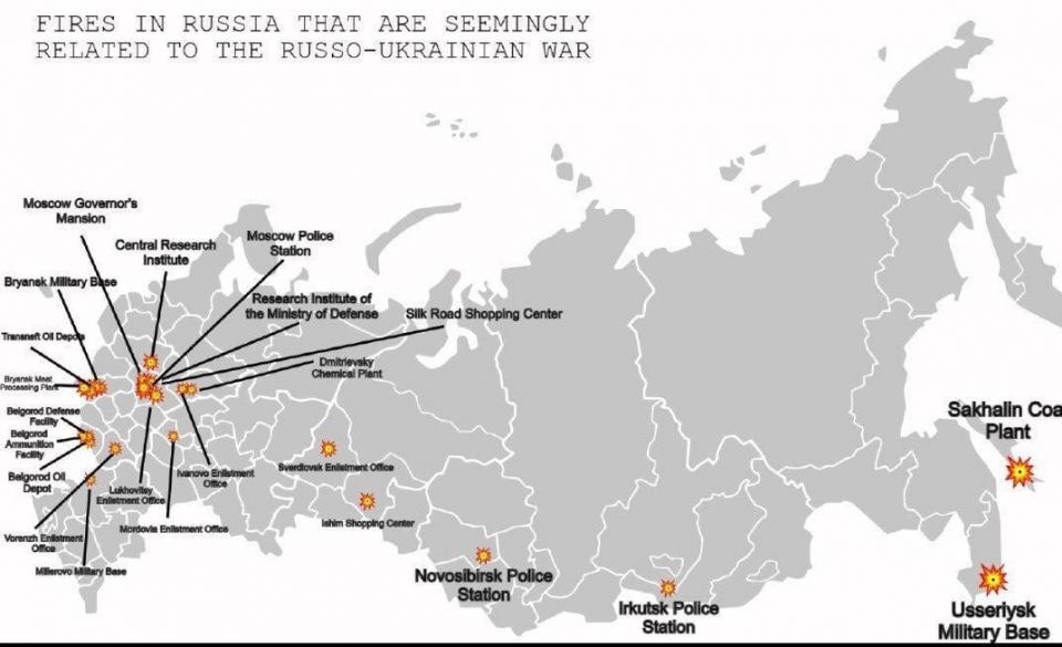 Самозапалення та самовибухи на об'єктах ВПК та силових структур на території РФ з 24 лютого