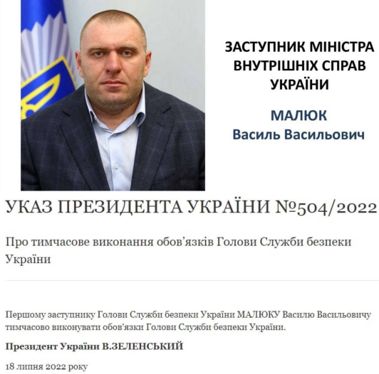 Т.в.о. глави СБУ призначено першого заступника Василя Малюка