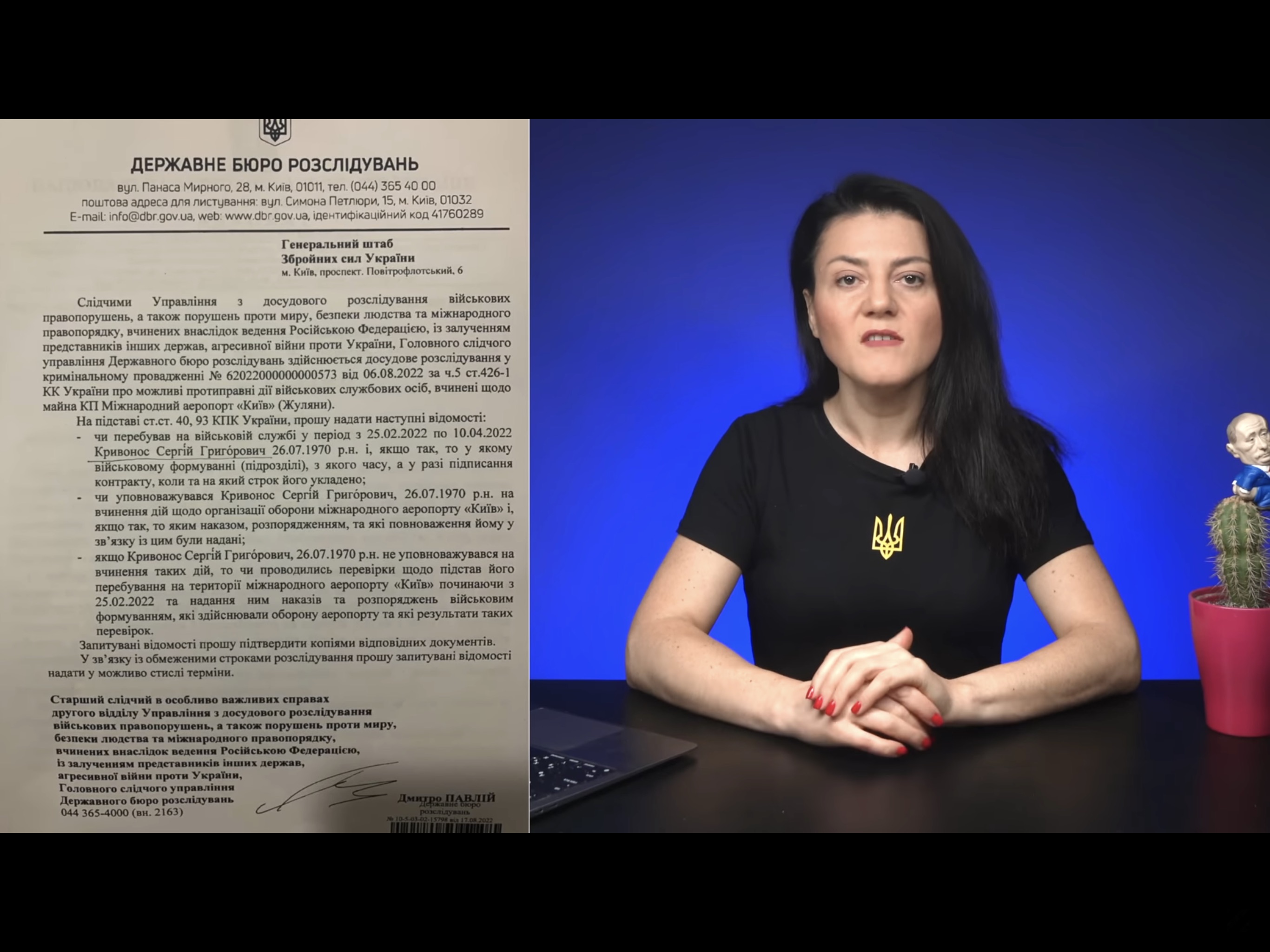 Видео всего на 13 минут. Там есть и скрин приказа о назначении ответственным за оборону и скрин запроса ДБР к Генштабу, где черным по белому упомянут генерал Кривонос, в рамках возбужденного дела (это, чтобы ты не сомневался против кого будет выдвинуто обвинение). Ну и пояснения. Кстати, пояснения совсем не эмоциональные, просто фиксации фактов.