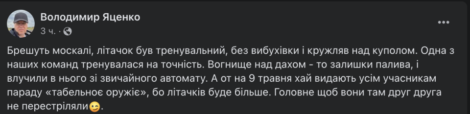Так то ж Хуйло та Мєдвєдвє - вони по ночах самотужки несуть спостереження щоб над мацквою жоден безпілотник не пролетів - кацапи сами пишуть, що було скоєно замах на Хуйла - тобто він в цей момент був поруч з безпілотником.
