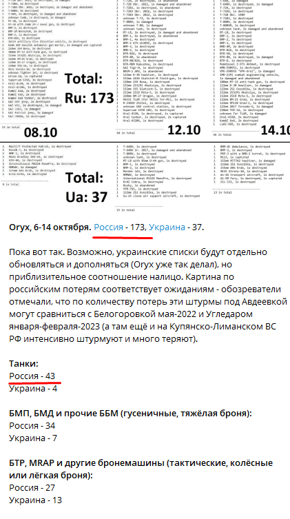 Эта статистика говорит только о том, что кацапы хуже учатся, чем мы и амеры. Амеры не дают нам абрамсы, потому что дрон за 400 баксов выводит из строя танк за 6 лямов. И мы меньше тяжелой техники используем. Плюс кацапы сейчас идут на штурм, поэтому у них потери в технике крайне высокие - они едут на наши дроны и минные поля.