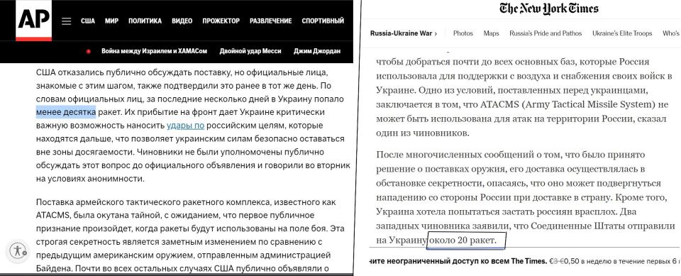 "США нещодавно доставили в Україну ракети ATACMS радіусом дії до 100 миль (близько 160 км - ред.) в рамках нашої постійної підтримки українського народу від жорсткого вторгнення Росії", - заявила Вотсон.