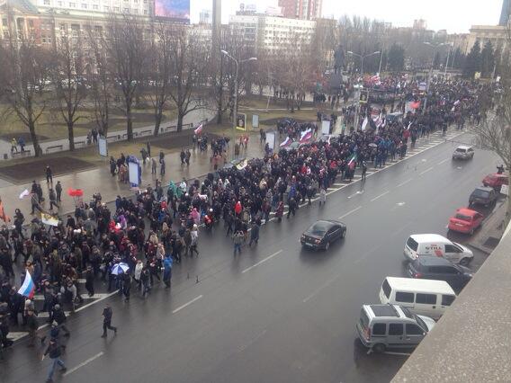 В центре Харькова митингующие за федерализацию развернули стометровый флаг РФ