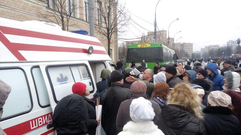 Люди с беркутом головного мозга окружили Дом пионеров и заявляют, что Правый Сектор взял в заложники детей