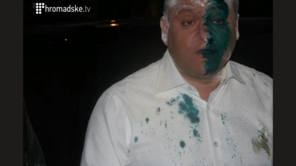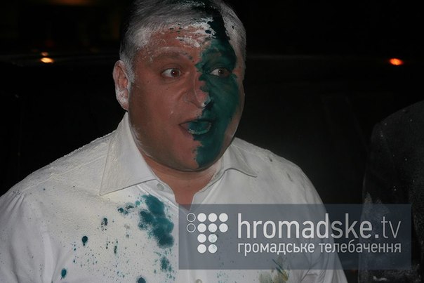 Політика та його охоронців облили зеленкою та обсипали борошном.
