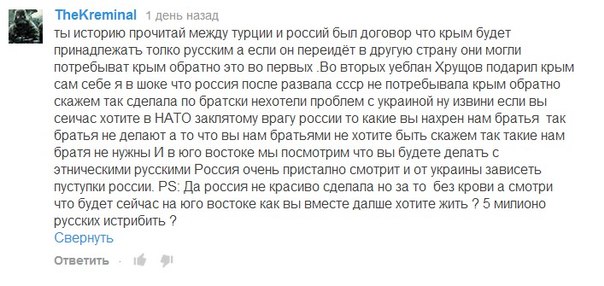 Путлєр з Лавровим хай когось іншого лякають. Вони навіть не уявляють, що їх чекає тут. Мало того народ потім фіг зупиниш. Якщо чесно, то фраза "Давно не гуляла сокира по вулицях міста Москва" мені все більше і більше подобається.