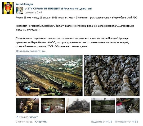 Разоблачения от АнтиМозга: аварию на ЧАЭС умышленно спровоцировали американские агенты с целью развала СССР.