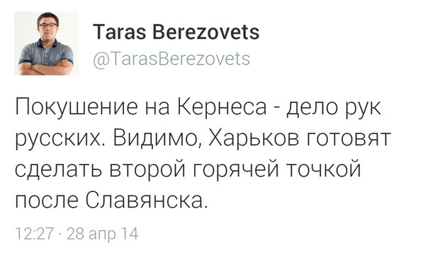 На Кернеса (Гепу) совершено покушение, у него ранение в спину, охрана отвезла его в больницу. Говорят ранение серьезное. Больше информации пока нет.