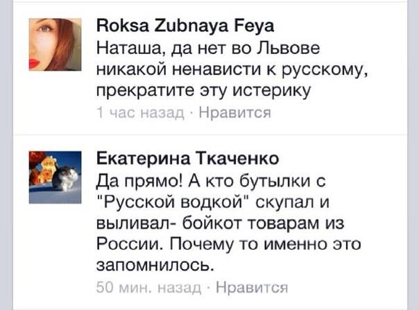 Вообще, я считаю, что жить надо дружно. И это вообще ппц - когда русские спорят с украинцами/украинцы с русскими, что-то там выясняют. Это ж ппц! У меня половину родни родом с Украины. Это все равно, что в внутри семьи ругаться.