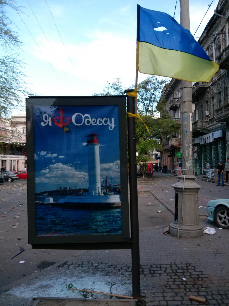 Участники митинга "За единство Украины" в Одессе разгромили автомобиль, на котором сепаратисты прибыли в город