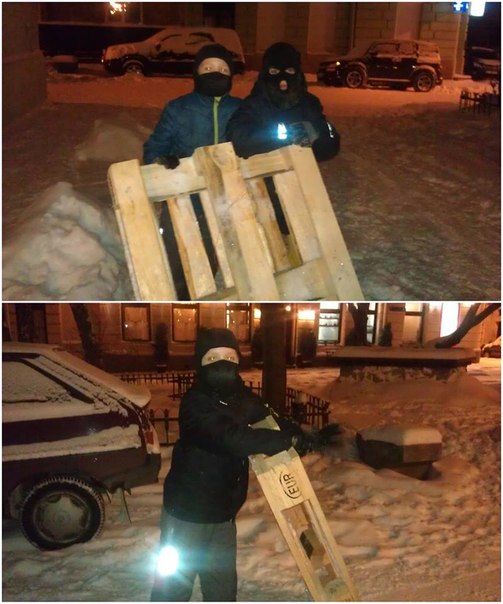 Бачимо з Svyatoslav Stets якихось хлопців, які в терорках тягнуть дерев'яні палети. Підходимо, представляюся:
