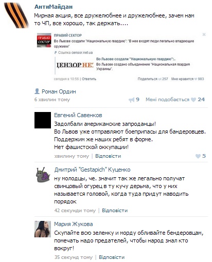 Решил зайти в группу "Антимайдан" вконтакте ... Львов, выходи встречать самолёты с американскими боеприпасами !!!