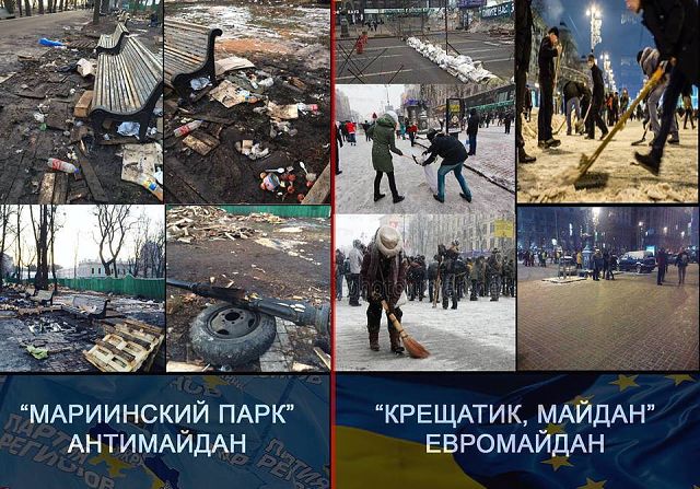 На этих фотографиях отчетливо видно, как два сотрудника Беркута "прикуривают" друг у друга бутылки с зажигательной смесью, после чего дружно, как статисты в балете, метают их в толпу.