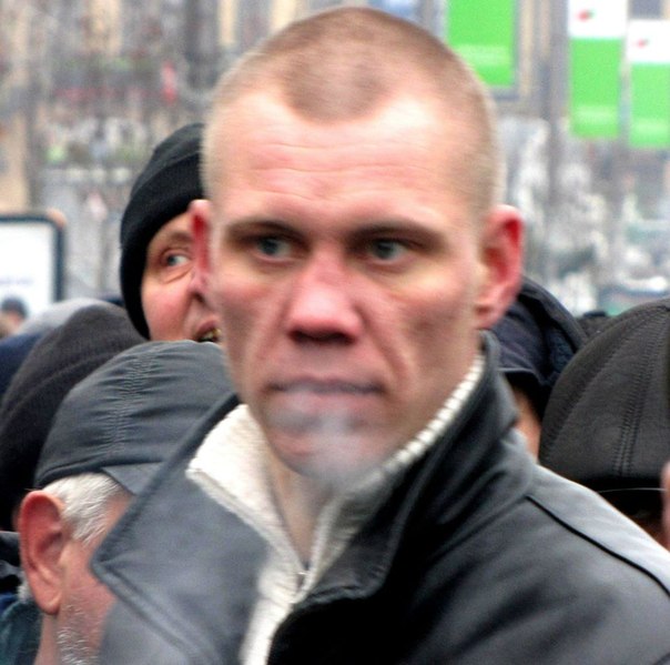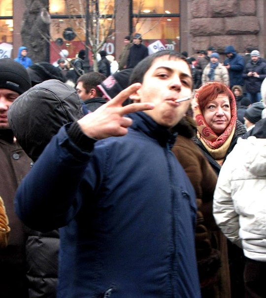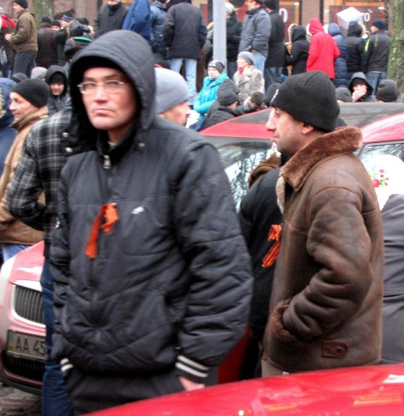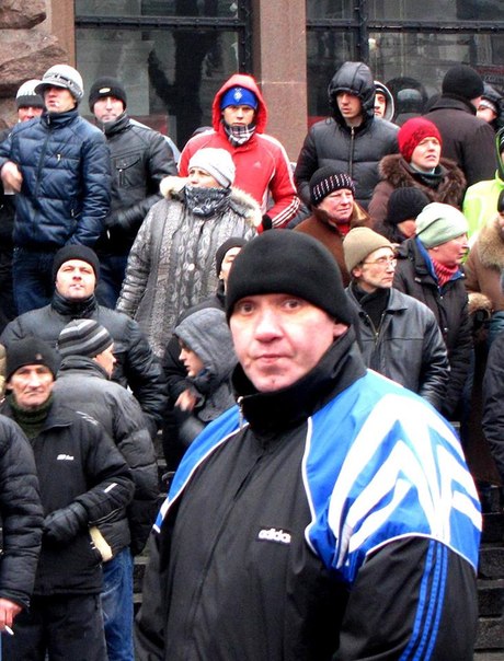 Какой же глубокий смысл можно отискать в ихних взглядах. мимике. Вот они - коренные жители столицы(правда не уточняется какой по счёту) Украины, борцы за чистоту на ихней малой родине. У них даже герб свой есть, как же всё организовано.