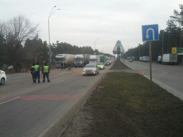 З Броварів до Києва – пропускають тільки через 1 смугу з чотирьох, решта зайняті вантажівками з піском. Цей КП можна об’їхати, повернувши направо перед КП (через заправку з газом, або через Пуховку та Зазим’я).