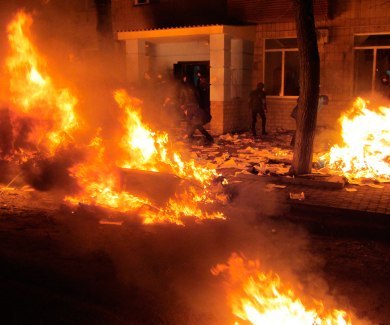"На трасі Одеса-Київ неподалік смт. Маньківка (біля Умані) протестувальники організували свій контроль. Наразі вони роззброїли мікроавтобус з мусорами, що їхав на Київ з Одеси. Також спалили великий автобус, яким добиралися в столицю тітушки. Перелякані тітушки розбіглися."