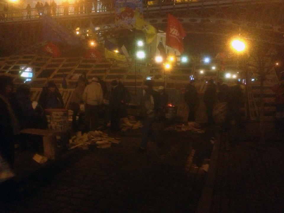Не дождавшись разгона митинга, украинская оппозиция покинула баррикады на Институтской улице у Майдана Независимости (ФОТО). Митингующие сначали ждали силовых действий со стороны спецназа "Беркут", опасались провокаций, но под утро сами разошлись.