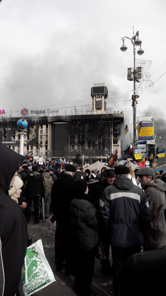 Во вторник был на майдане, подвозили с другом еду и медикаменты. Впечатлился картиной - подъехал белый новенький ниссан жук к барикадам со стороны прорезной с киевскими номерами, вылез чувак в каске и защите, из багажника достал биту, поставил машину на сигналку и побежал на барикады.