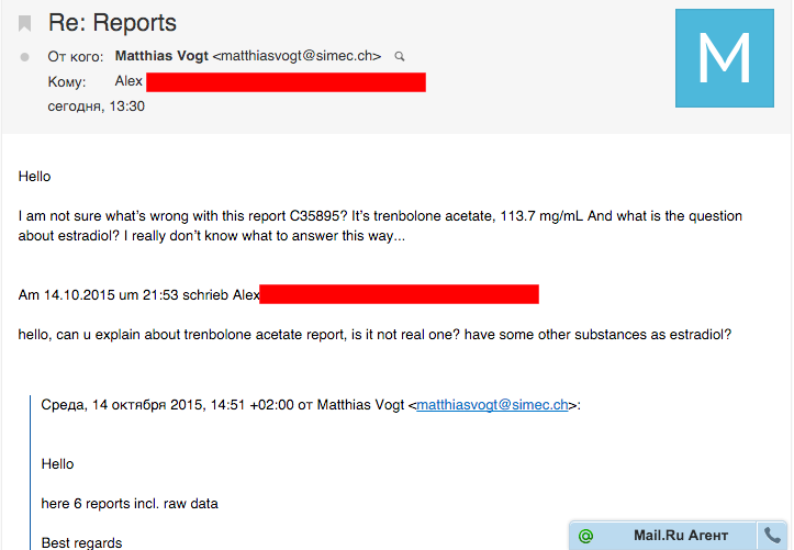 MaJ0r Опубліковано: 15 жовтня 2015 Опубліковано: 15 жовтня 2015 Вон чувак оттуда ответил, что там 113мг ацетата и вообще базарит че те еще надо то Если это правда, там интересная фраза, что за эстрадиол, я не знаю, что ответить в этом случае. Может действительно правы те, кто говорит, что у нас лаборатории при анализах что-то путают и показывают многократно повышенное эстро после трена, а его нет у людей? Кстати обратите внимание на стиль написания письма иностранным контрагентом и на стиль написания Алекса ) Чем мне нравятся иностранцы, они всегда предельно вежливые в переписке.