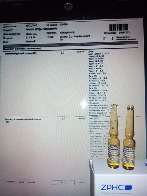 bobir2005 Опубликовано 30 января, 2015 Опубликовано 30 января, 2015 ПоказатьВот результаты с суста ихнего. Результатом доволен, жаль только что другой лабы нет кроме синево в городе, чтоб без лимита можно было тест проверить. Качество препарата хорошое, не только на словах, но и деле так сказать. Сколько ставил суст прежде чем здать? Дозировка? Через сколько после укола был здан анализ? Выпрашивать всё надо) Хотя судя по ЛГ и ФСГ ставиш не так давно