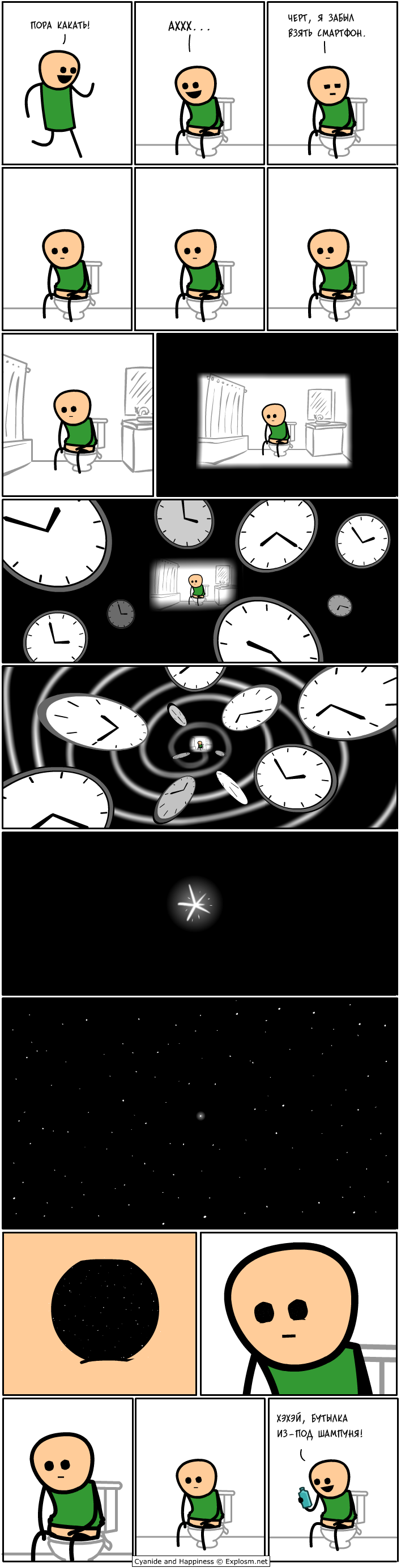 Valdimus Опубликовано 25 апреля, 2011 Опубликовано 25 апреля, 2011 В чем прикол собсно? В том, чтобы некоторые узнали себя и улыбнулись. Если детально описать, то выходит так: 1. человек заходит по делам в туалет, и забывает телефон, с которым можно было б поиграться или почитать, то есть - скоротать время 2. Ему кажется, что время просто сидя на толчке тянется бесконечно долго 3. Находит шампунь и радуется, что можно хоть что-то почитать (этикетку) и время уже не тянется так долго Я когда-то очень любил принимая ванну почитать на своём смартфоне какую-то книгу, после того как смарт у меня украли, я заметил, как начинаю перечитывать все этикетки на бутылках в ванной комнате, чтобы было веселей. Вот меня этот комикс и улыбнул, я увидел себя. Раз улыбнул, значит прикольный комикс, и я решил им поделится. Если вам он не близок, то я не виноват. Я с него смеятся не заставляю видимо мы не курили то, что курил Valdimus у каждого своё чувство юмора