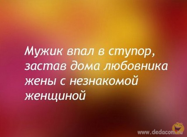 mad76 Опубліковано: 12 квітня 2014 Опубліковано: 12 квітня 2014 - Доктор! Я никак не могу сходить в туалет! - Главное-оптимизм! Не можете в туалет - сходите в театр, на выставку... – Вся ванна заставлена твоими сраными кремами и бальзамами! – Ты хочешь, чтобы у меня была сухая кожа?! – Петрович, мне по**й! - Доктор, у меня между пальцами ног чешется. - Между какими? - Между большими. Встречаются две подружки: - Ты чего сегодня такая злая? - Представляешь, меня сегодня нах...й послали! А ты чего такая радостная?! - А меня туда же, но - вежливо пригласили! Жена: - Я ушла к гинекологу! Муж: - Давай! Покажи им там всем! Если скучно стало ехать в маршрутке, посмотри внимательно в глаза любому попутчику, и спокойно, но громко, скажи в мобилку: "Шеф! Я его нашёл. Что делать дальше?"