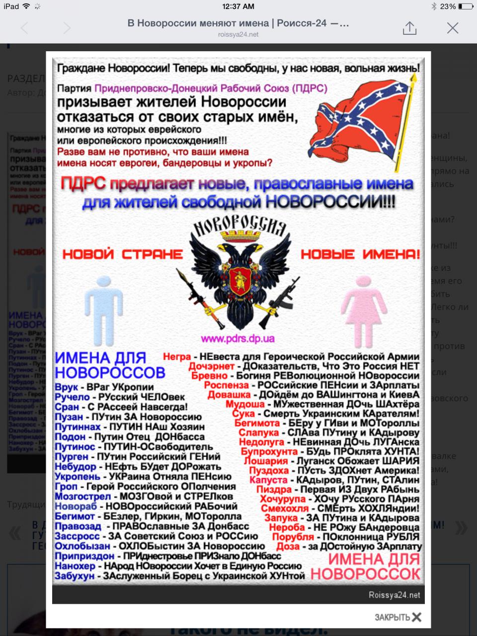 Elgreg Опубліковано: 1 лютого 2015 Опубліковано: 1 лютого 2015 В новососсии меняют имена!))) Показать