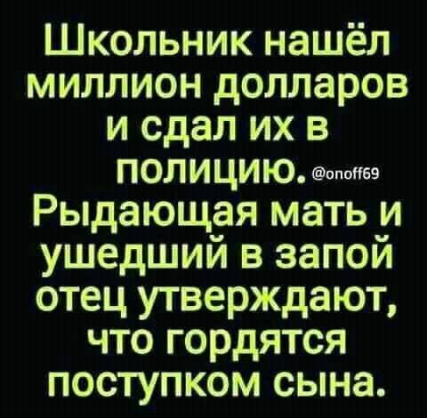 andreyyy Опубліковано: 22 червня 2019 Опубліковано: 22 червня 2019 Меня спрашивает:"Как тебе?" Я:"Да ничего, главное чтоб человек был хороший" Сори, с телефона трудно под спойлер прятать