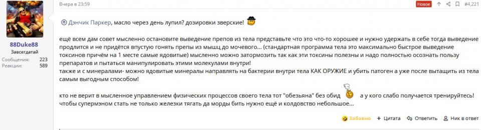andreyyy Опубликовано 29 декабря, 2020 Опубликовано 29 декабря, 2020 Мля, это покруче будет, чем перлы от Messs у меня в подписи! :zhet: Показать ну у чувака реально походу получается токсины удерживать