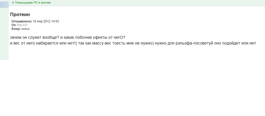 Hvaran Опубліковано: 10 січня 2012 Опубліковано: 10 січня 2012 очередной бред в умах наших граждан-личка,вопрос по протеину внимание на орфографию и неподрожаемый стиль письма - маэсто эстет.... Напиши, что побочка - член растёт и прыши перестают появляться на лице, но только если очень много его есть.