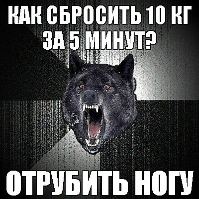 Faust Опубліковано: 7 лютого 2012 Опубліковано: 7 лютого 2012 -Люди, подскажите, как быстро скинуть 6-8 кг, только реально, очень нужно. - Отрежь руку.