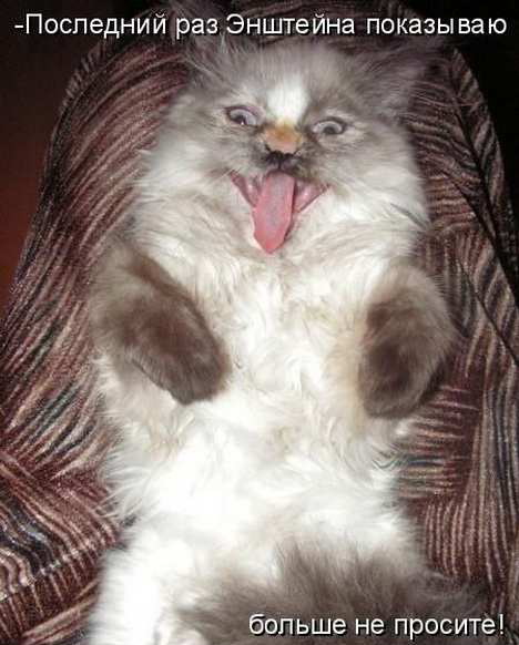 Заноза. Опубліковано: 17 квітня 2012 Опубліковано: 17 квітня 2012 Из жизни замечательных котов)))) Если бы Энштейн был котэ, он бы был таким