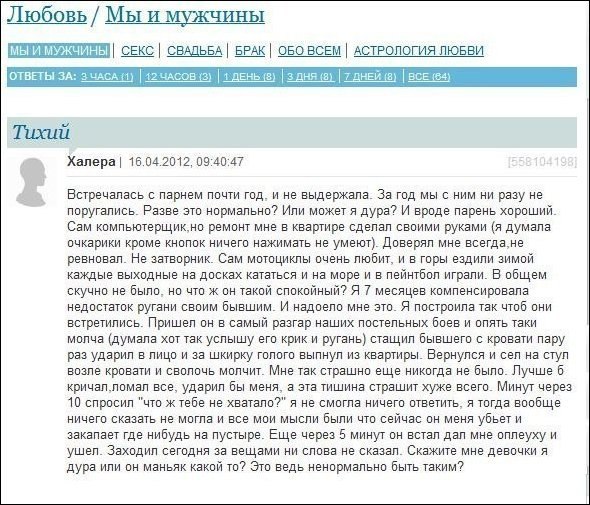 stalker Опубліковано: 7 червня 2012 Опубліковано: 7 червня 2012 Однажды ты спросишь, что я люблю больше: борщ или минет. Я скажу «тебя!». Я – хитрый.