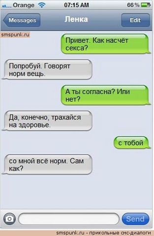 paraschyk1 Опубліковано: 3 грудня 2012 Опубліковано: 3 грудня 2012 Он и она. Она. -Какой твой любимый день недели? -Среда. -А почему среда? -В среду приседаю. -А какой тогда не любимый? -Пятница. -Оо чего пятница? -Потому что,блеать,в среду хорошо поприседал!