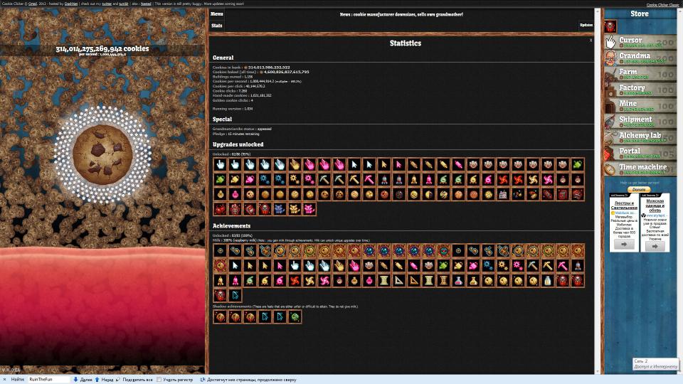 Outlawif Опубліковано: 4 вересня 2013 Опубліковано: 4 вересня 2013 Вот продвинутая версия https://orteil.dashnet.org/cookieclicker/ Прикольная кстати фиговина, с точки зрения жиэс разраба. Кто-то руку набивал ))