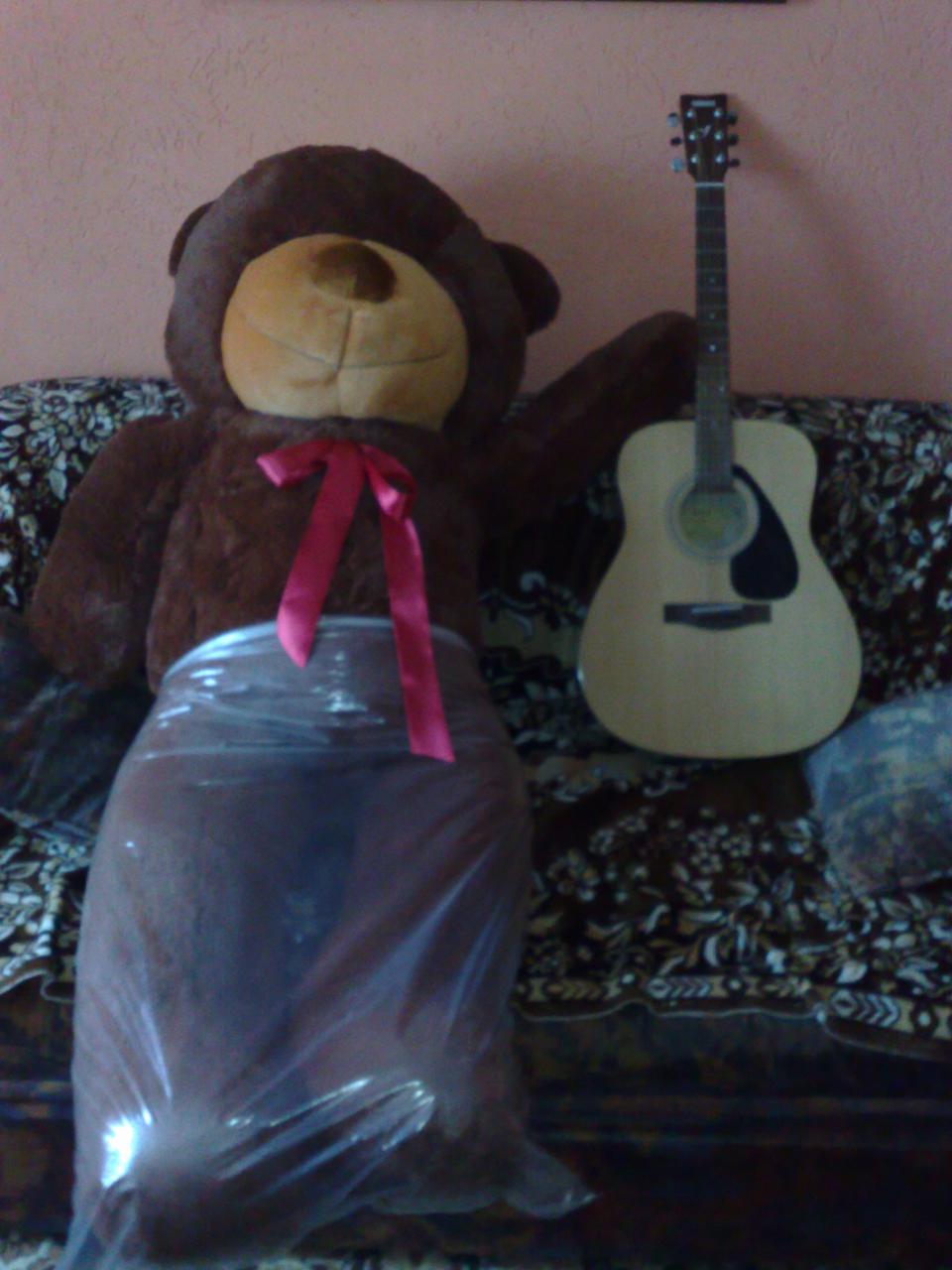 everton17 Опубликовано 5 июня, 2014 Автор Опубликовано 5 июня, 2014 гитара? не понял вопроса) это чтобы понимать габариты примерные медведя, положил рядом гитару или модель гитары интересует?) ямаха Ф310 еси че) Он спит или умер? Глаза закрыты, и в пакете... живой) глаза просто у него низко опушены, прям после лица начинаются, на фото не особо видать а пакет с ног не снимал после покупки