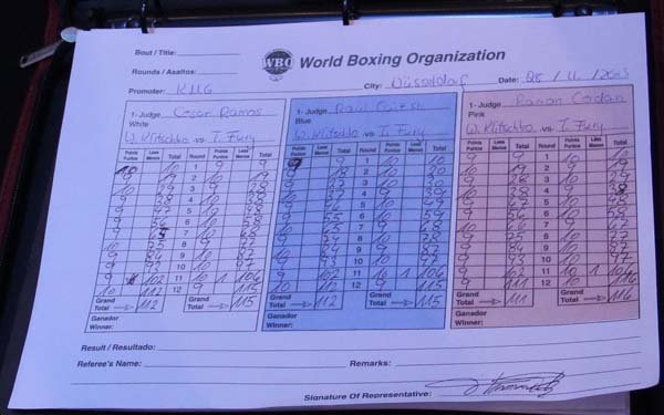Офіційні карти суддів в бою Володимир Кличко - Тайсон Ф’юрі.