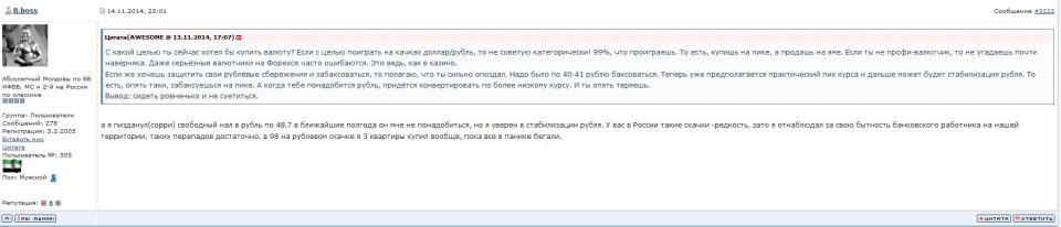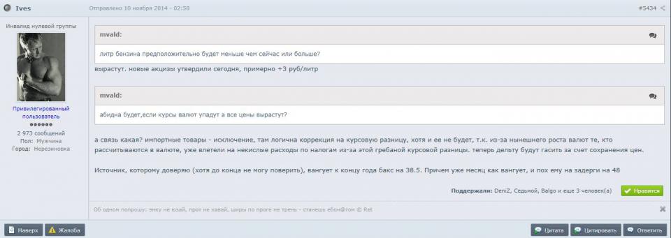 Garon Опубликовано 17 ноября, 2014 Опубликовано 17 ноября, 2014 Я на фитспорте читал как один чудак на днях все сбережения в рубли перевел. Специально. Типа хитрый план такой.