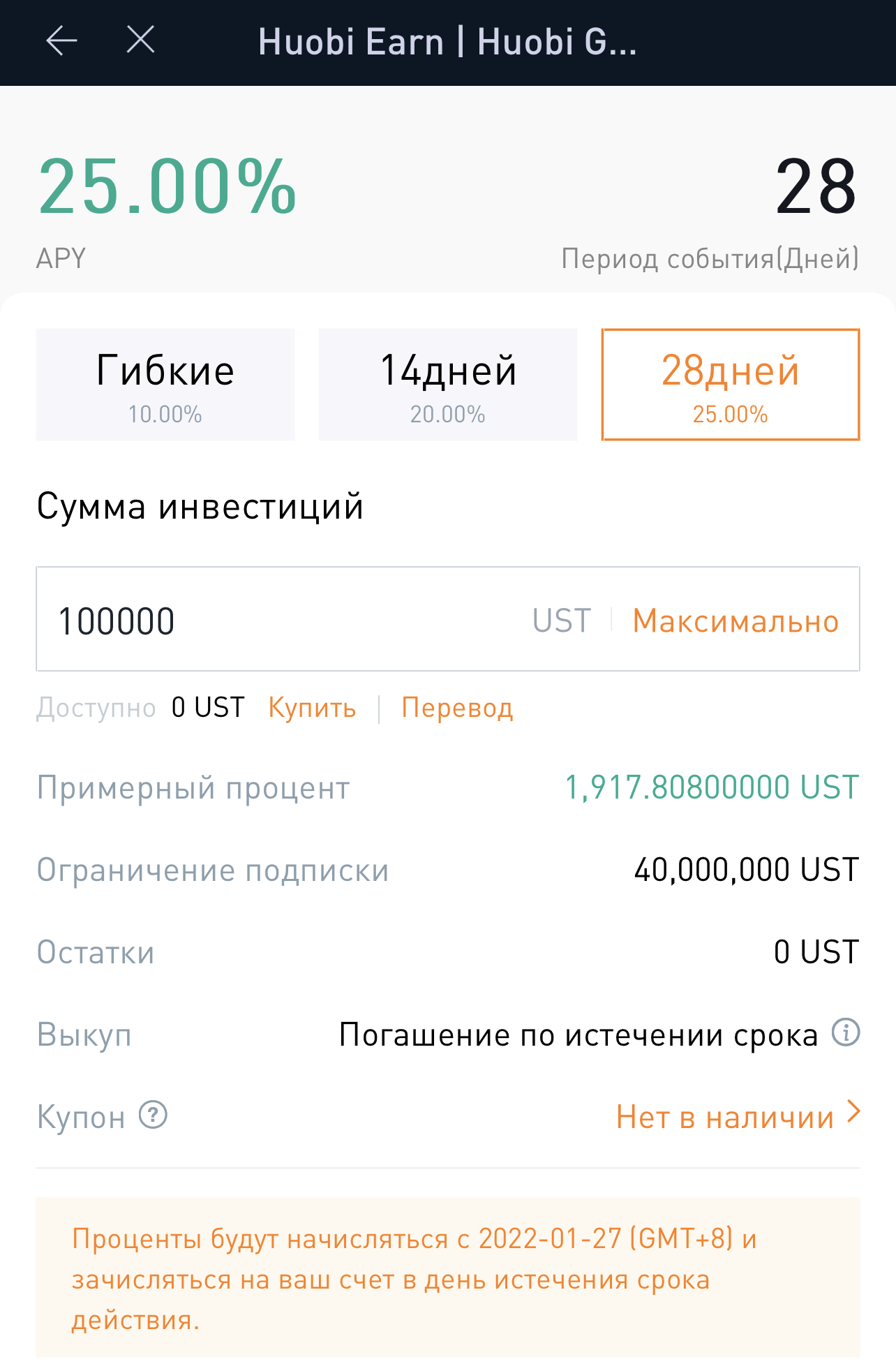 wolf Опубліковано: 25 січня 2022 Опубліковано: 25 січня 2022 На хуоби вон щас на стейбл луны 25% годовых На 28 дней ложишь = +1.92% Со 100к, 2к себе за месяц ложишь в карман и куришь бамбук Показать
