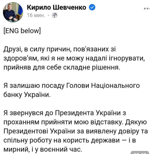 Faust Опубліковано: 4 жовтня 2022 Опубліковано: 4 жовтня 2022 Голова Національного банку Кирило Шевченко подав заяву про відставку