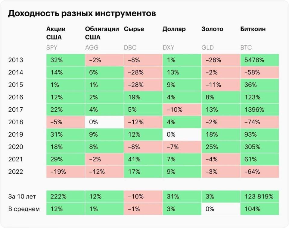 Outlawif Опубліковано: 2 січня 2023 Опубліковано: 2 січня 2023 Мое любимое - вилами по воде) Картинку нашел прикольную. Сравнительная таблица разных инвестиций за 10 лет.