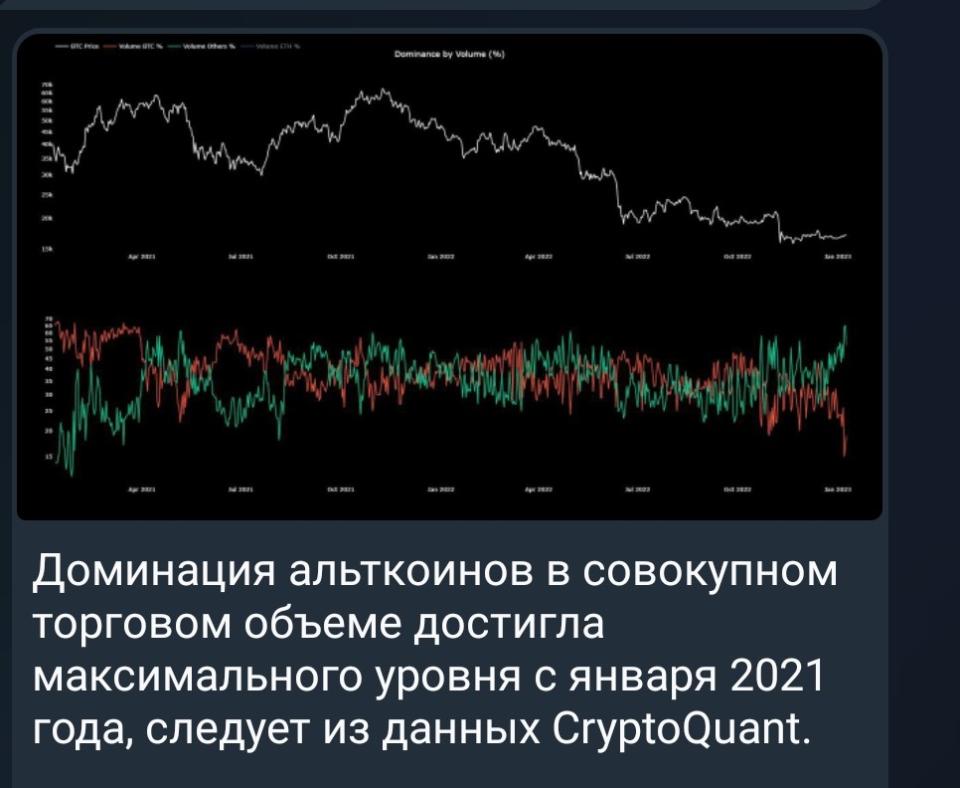Outlawif Опубліковано: 12 січня 2023 Опубліковано: 12 січня 2023 читаю такое Есть графики. Вот например доминация битка: Показать Это дневной таймфрейм, видишь последняя зеленая свечка - на ней идет рост битка относительно альты. Сейчас вообще альта тоже подрастает, но похоже что медленнее. Ну и что логично, доминация альткоинов рисует противоположно направленную дневную свечку: Показать Это все если мы про конкретно последние пару дней пампа говорим. Еще там есть доминация эфира и доминация стейблкоинов, там не двухходовочка а больше )