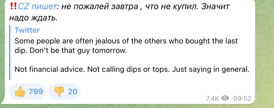 Outlawif Опубликовано 3 марта, 2023 Опубликовано 3 марта, 2023 Не, фигню этот блоггер пишет. Может у него с английским не лады. Но так как он трактует это понять нельзя. К тому же СиЗи конечно Годзилла в криптомире, но даже у него нет глобальных инсайдов куда пойдет или куда дойдет биткоин, и когда. Он обладает многими инсайдами и может лучше прогнозировать, к тому же сам в состоянии оказывать серьезное влияние на рынок, но мы не в матрице живем, а он не архитектор )