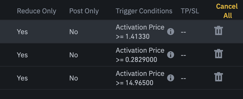 OlegRO Опубликовано 10 марта, 2023 Опубликовано 10 марта, 2023 посмотри может есть где карандашик (редактирование) справа или в позиции , или в списке ордеров в торговом окне (показать все) или в списке ордеров в головной https://www.binance.com/uk-UA/my/orders/margin/openorder нету открытых чтоб проверить.. хотя проще всего удалить да создать как хочешь открыл для себя настройку multi-assets на бинансе так расскажешь как помогло?