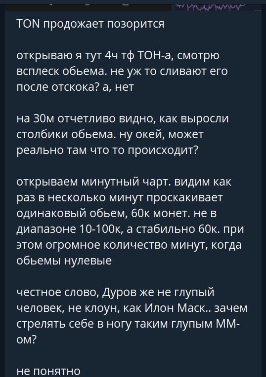 Outlawif Опубликовано 16 сентября, 2023 Опубликовано 16 сентября, 2023 что думаете про телеграмную монетку TON Будет долго жить и хорошо расти вместе со всем рынком. Внезапных иксов уже скорее всего не даст. Как инвест-позицию можно держать. Хотя непонятно зачем, когда есть куча других монет без такого геморойного способа их купить и держать. Если Олег прав и она на совести фсб вместе с телеграммом, может соскамиться когда рашка проиграет войну. Я же на 100% уверен что он абсолютно неправ по обоим пунктам, поэтому я думаю что она не соскамится. Сам я ее не держу. Покупал только разок, когда покупал нфт телеги не привязанной к номеру.