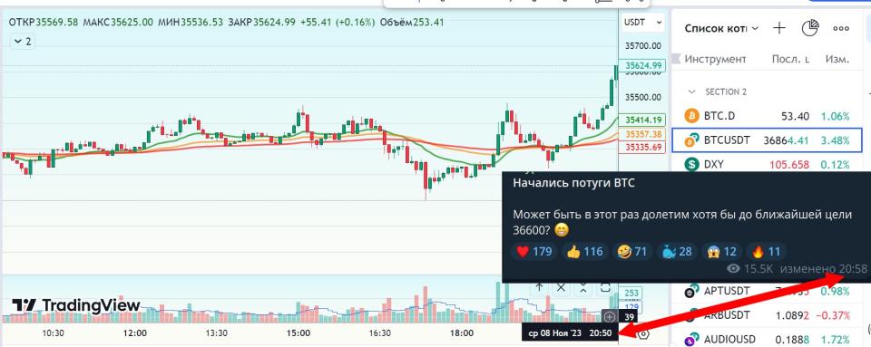 OlegRO Опубликовано 9 ноября, 2023 Опубликовано 9 ноября, 2023 и вот ровно сегодня 36600ну нет же, 36990а на графике том 2 зоны 36200-36300 и 36800-37100 колдунство работает ) там просто график с двумя полками и мольба "Может быть в этот раз .." а так да, всё работает когда он действительно вчера начал движения вверх, можно написать потом "Начались потуги BTC. Может быть в этот раз долетим хотя бы до ближайшей цели 36600" Показать