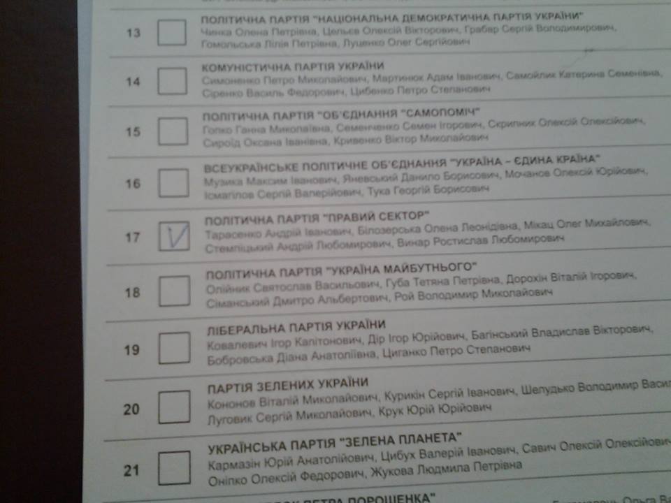 Шол голосовать за Самопомощ, но в последний момент отдал голос за Интернет партию.. Жена ж изначально шла "против всех" , но пункта такого не оказалось, потому поставила тоже за Вейдера )