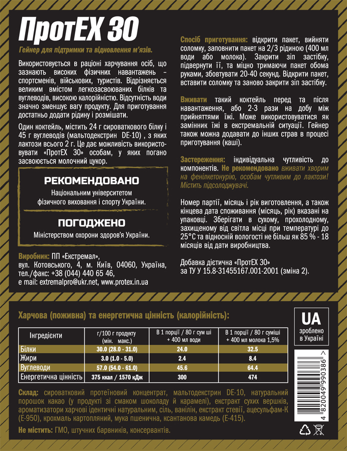 extremal Опубликовано 12 ноября, 2014 Опубликовано 12 ноября, 2014 Год назад на страйкбольной игре отобедал НАТОвским сухим пайком. Интереснейшая штука хочу я Вам сказать. Разные продукты запакованы в герметичные пакетики. Среди всего прочего есть сухой лимонад типа славноприсного "Юпи". Первая попытка приготовления этого лимонада оказалась неудачной - засыпал во фляжку с водой и выпил. Всё хорошо, но фляжка воняла апельсином ещё год. В этом году на летней игре опять столкнулся с этим лимонадом в пайке. Люди более опытные открыли мне тайну приготовления Юпи в полевых условиях: прозрачный пакетик с зипом, входящий в паёк, не для мусора, а для приготовления лимонада! Засыпал / залил / закрыл / взболтал / открыл / выпил. Всё гениальное просто! Компания Экстремал специально для туристов и военных разработала новую упаковку для белково-углеводных сухих смесей. Используется как белково - углеводная добавка к основному рациону или как заменитель еды в экстремальной ситуации. Одобрено к использованию Министерством охраны здоровья и Институтом физического воспитания и спорта Украины. Тестировано на военнослужащих с дефицитом массы тела (гейнер 3000 максимум) Рекомендовано к использованию в дальних туристических походах (отчёт заключение) Преимущества спортивного питания в такой упаковке: 1) 24 г белка, 45,6 г углеводов, 2,4 г жира и 300 ккал в 1 порции (80 г смеси) 2) Возможность быстрого приготовления в полевых условиях (без шейкера). 3) Открыл / залил / закрыл / взболтал / открыл / достал соломку / закрыл / выпил. 4) Поел и попил! 5) Можно использовать продукт как добавку при приготовлении каши или макаронов. 6) Отсутствие воды в продукте - минимальный вес. 7) Минимальное количество воздуха в заводской упаковке - минимальный объём и удобство при переноске. 8) Плоская прямоугольная форма - в каждый набедренный карман можно уложить 4 упаковки. 8 упаковок - 2400 ккал, 192 г белка, 364 г углеводов, при общем весе всего лишь 680 г брутто. 9) Коктейльная соломка внутри для удобства приёма. 10) Форма днища дой-пак - возможность поставить пакет. 11) Зип застёжка - удобство переноски и хранения. 12) Возможность самостоятельного дозирования наливаемой жидкости. 13) Многослойный материал пакета для увеличения сроков годности (18 месяцев) 14) "Не броская" защитная цветовая гамма этикетки. 15) Использованая упаковка может повторно использоваться как гермопак для переноски и хранения документов, личных вещей, денег. Пока что произвели опытную партию гейнера ПротЕХ 30 и МАКС 2000 Модерам - гиперссылка на картинку почему то не вставлялась, пришлось залить на сайт, простите. И ещё, считаю сделанные нами гейнеры в этой упаковке не наживанием на войне, а помощью нашим солдатам. В ближайшее время отчитаюсь кому и сколько передали бесплатно. Стоимость в розницу 1 такого пака около 25 грн. Скидка участникам АТО 20%. Друзья, что думаете по поводу этой штуки?