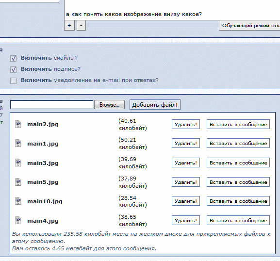 Наблюдатель Опубліковано: 7 січня 2014 Опубліковано: 7 січня 2014 а можно ли сделать так, чтоб при выборе опции *полное редактирование* сообщение показывалось в своём первоначальном виде вместе с добавленными фото, а чтоб удалить фото нужно было просто нажать скажем крестик напротив. ну или маленький превью сделать добавленных фото т.к. сейчас они просто в столбик внизу и не разберёшь что на каком, так сказать удаление вслепую наугад идёт.